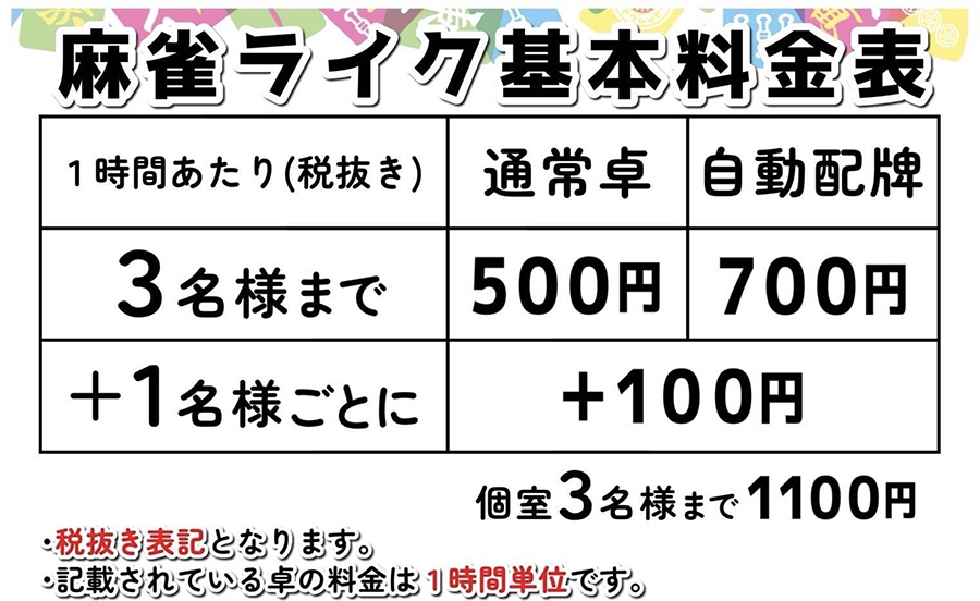 麻雀ライク(貸し卓税別500円〜)の営業情報